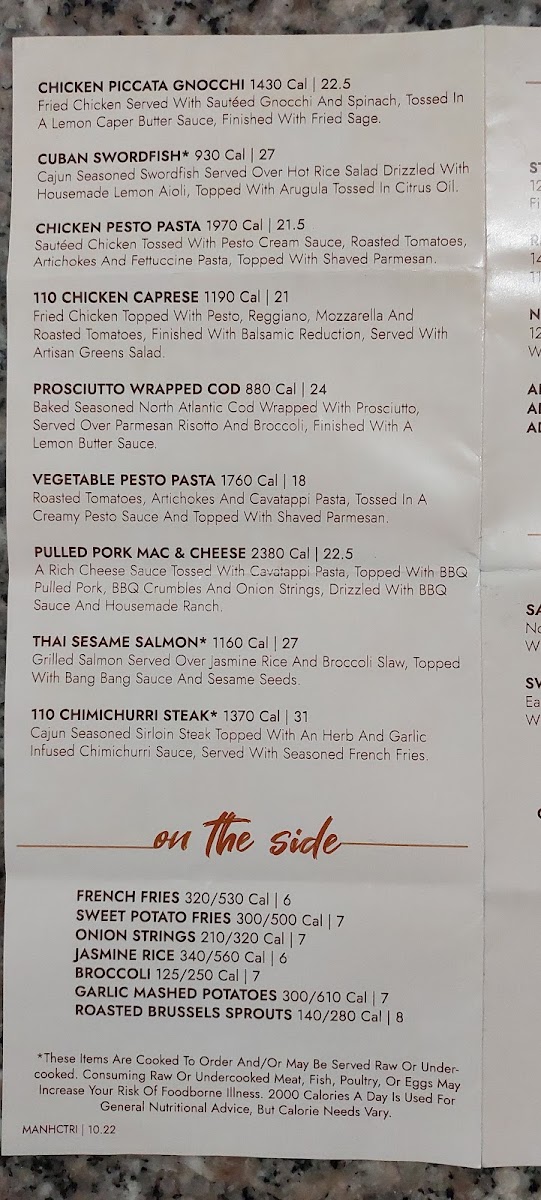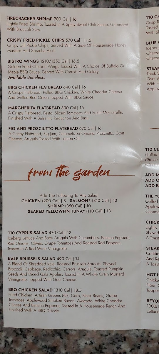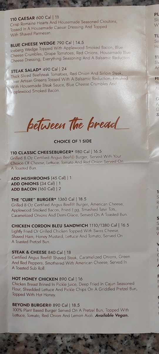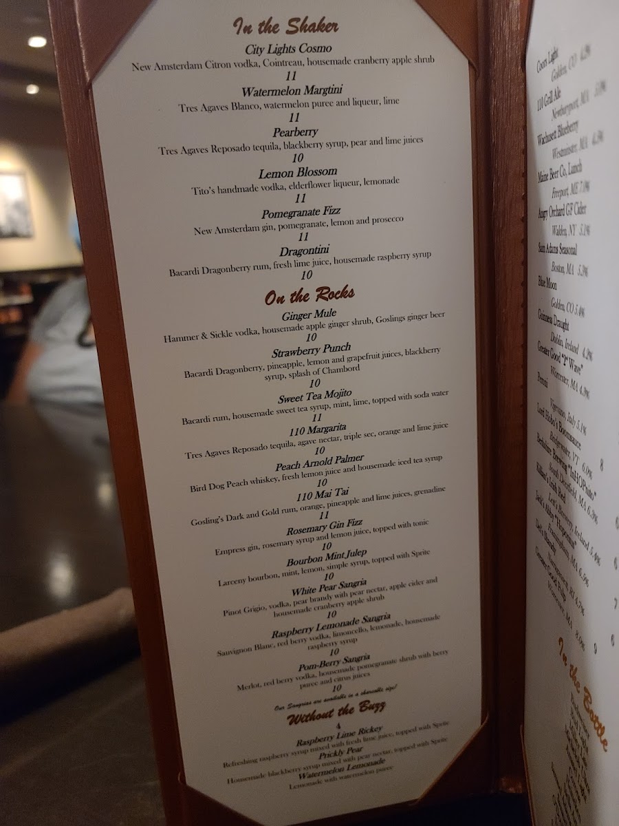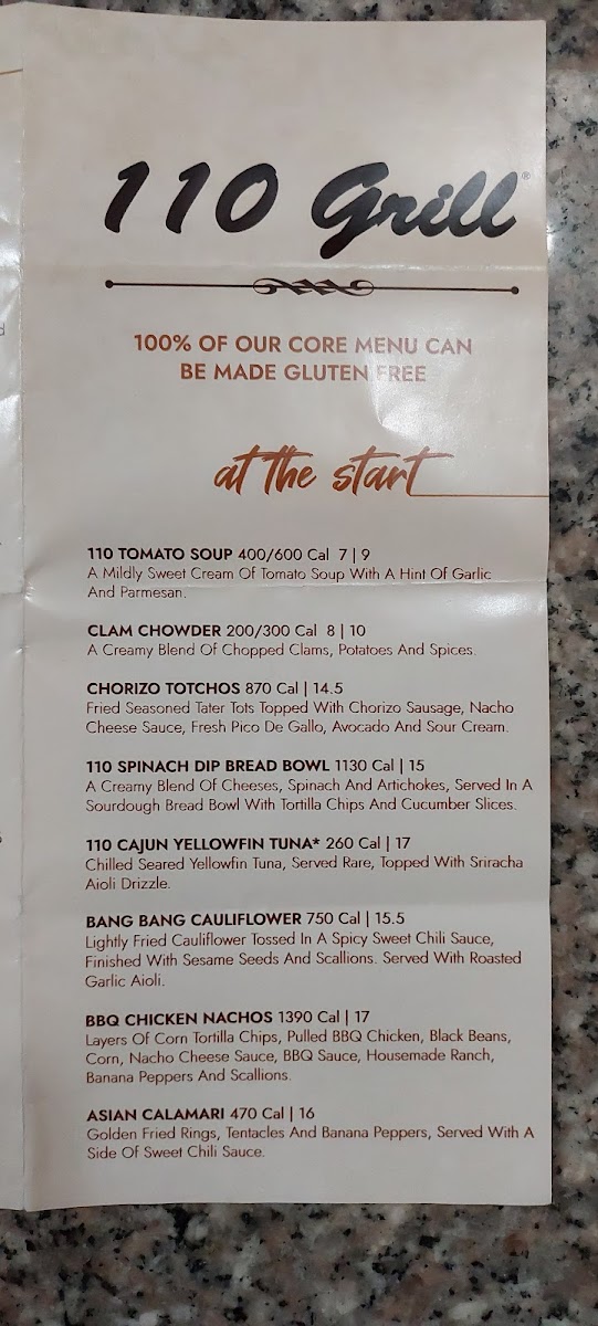 110 Grill - Worcester Menu